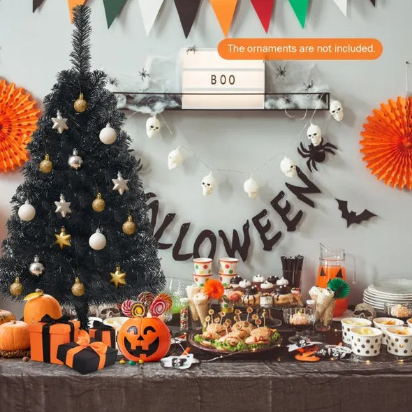 - Space-saving Design for Narrow Space: Aiming to emulate a real pine tree, the realistic Halloween tree has a unique black color. This compact 3ft artificial tree can be used in some narrow space and tight corners to increase mysterious atmosphere.