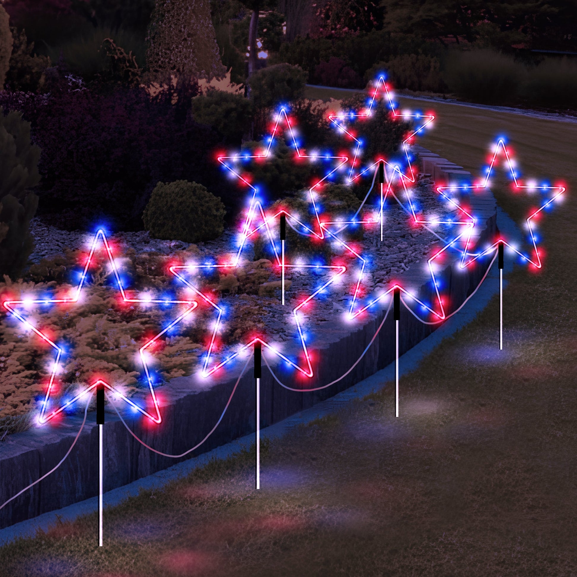 Outdoor Solar Pathway Lights Red White and Blue Star Lights for